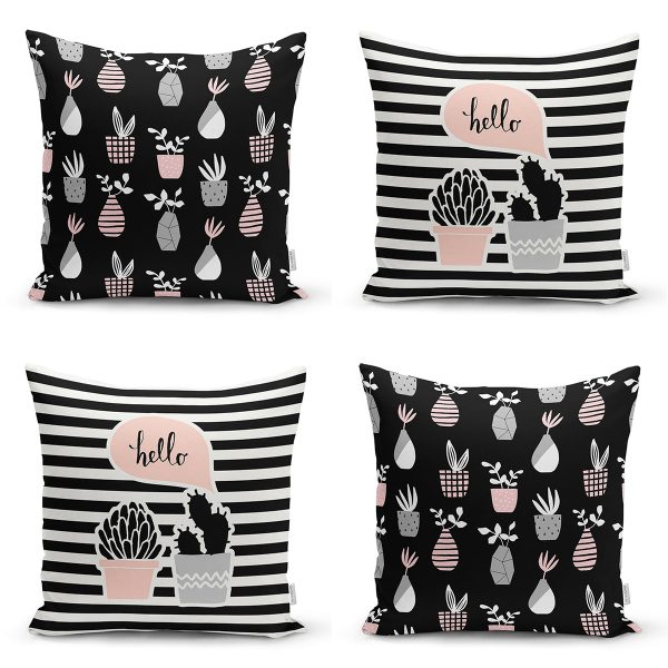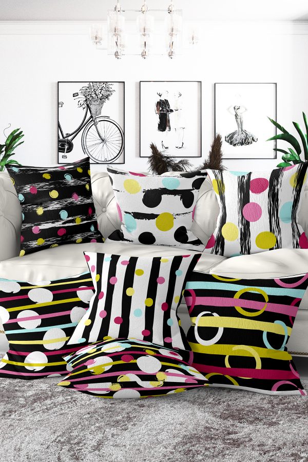 7’li Siyah Çizgili Renkli Puanlı Dijital Baskılı Kırlent Kılıfı Seti