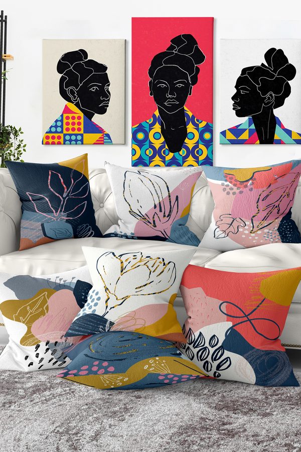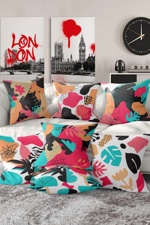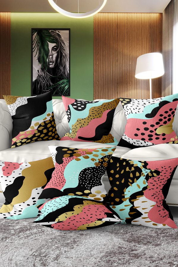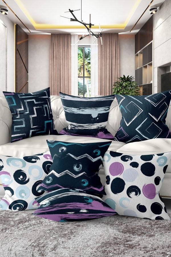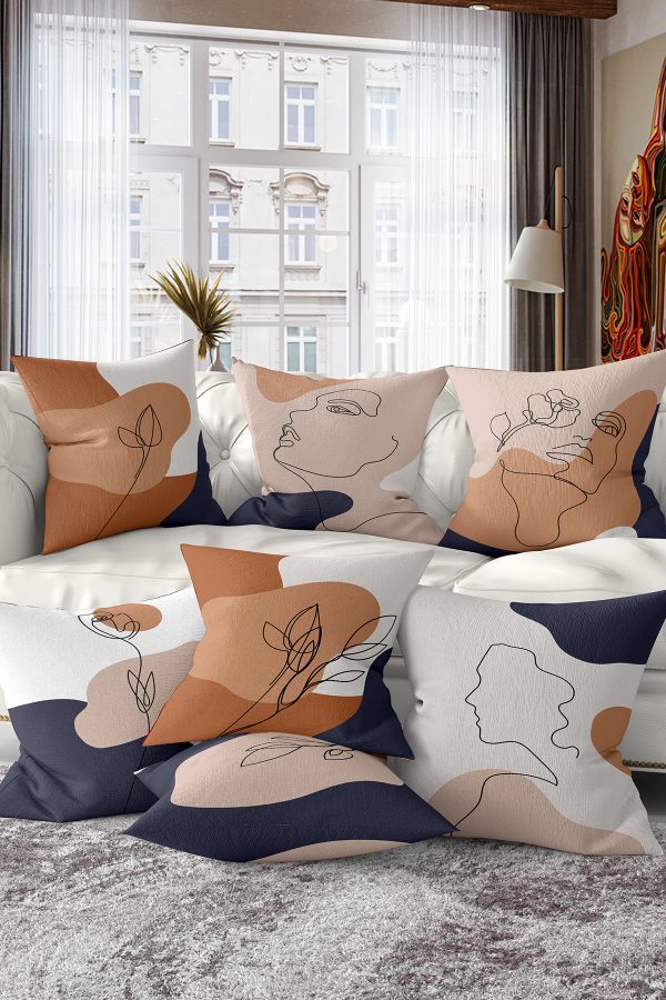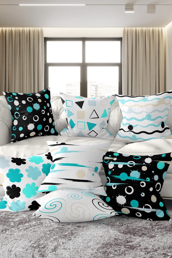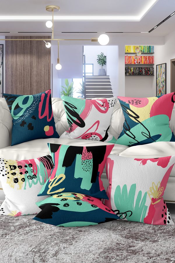7’li Soyut Minimalist Tasarımlı Dijital Baskılı Kırlent Kılıfı Seti