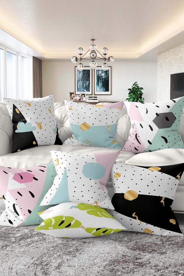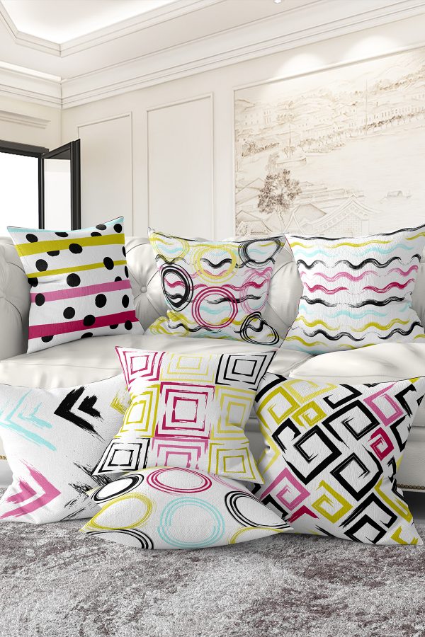 7’li Renkli Geometrik Çizimli Dijital Baskılı Kırlent Kılıfı Seti