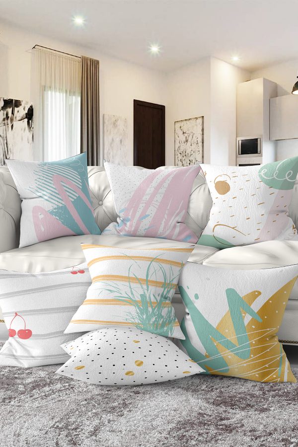 7’li Onedraw Pastel Renkli Özel Tasarım Dijital Baskılı Kırlent Kılıfı Seti