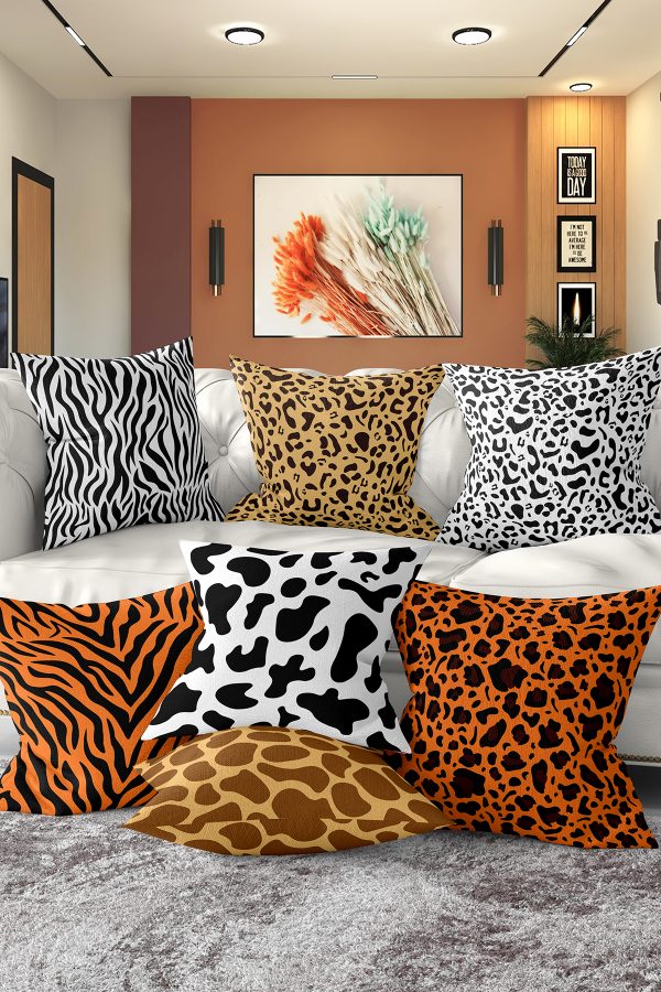 7’li Zebra Desen Motifli Dijital Baskılı Kırlent Kılıfı Seti