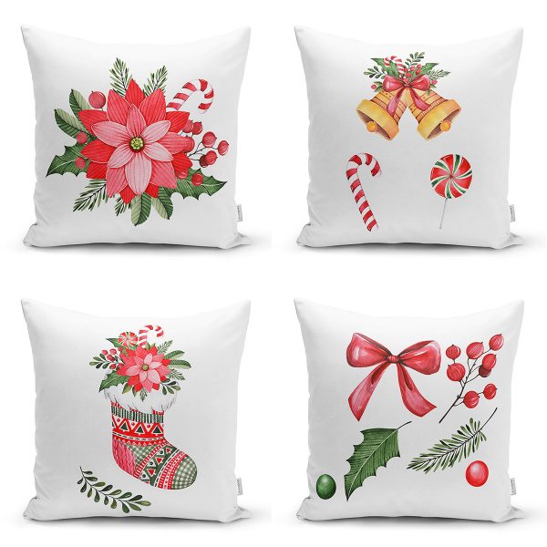Realhomes Ekose Zeminli Yılbaşı Desenli 4’lü Yastık Kırlent Kılıfı