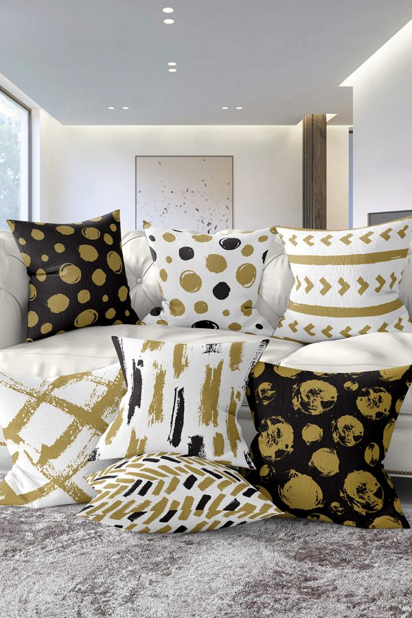 3’lü Gold Detaylı Soyut Çizimli Dekoratif Yastık Kırlent Kılıf Seti