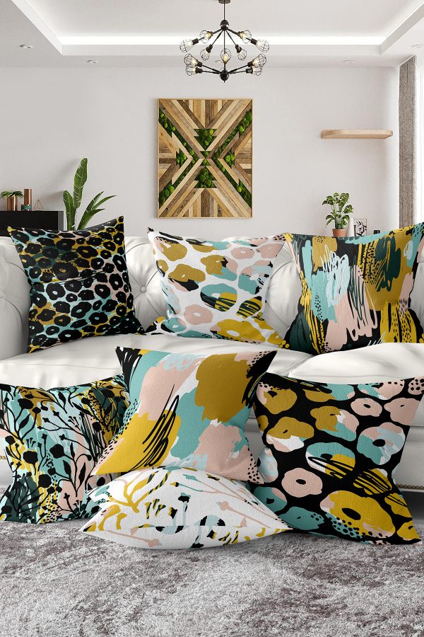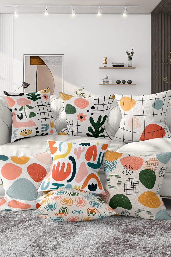 7’li Özel Tasarım Onedraw Çizimli Dijital Baskılı Kırlent Kılıfı Seti