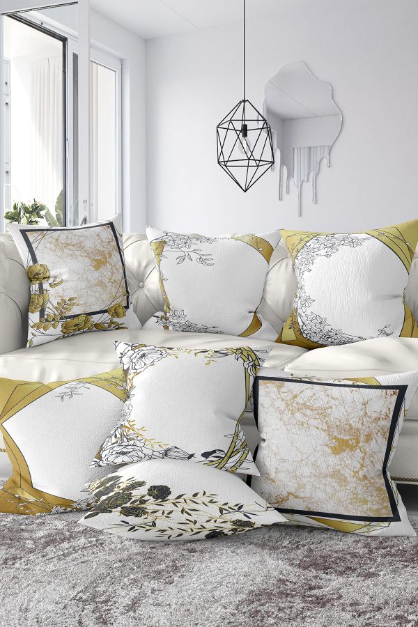 7’li Gold Çiçek Tasarımlı Dijital Baskılı Kırlent Kılıfı Seti