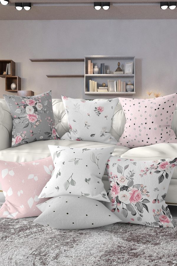 7’li Soft Çiçek Motifli Dijital Baskılı Kırlent Kılıfı Seti