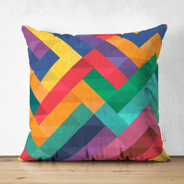 Renkli Zeminli Geometrik Desenli Dijital Baskılı Modern Raşel Kadife Yastık Kırlent Kılıfı