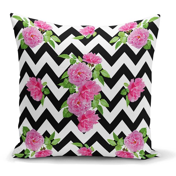 Zigzag Zebra Temalı Gül Motifli Modern Yastık Kılıfı