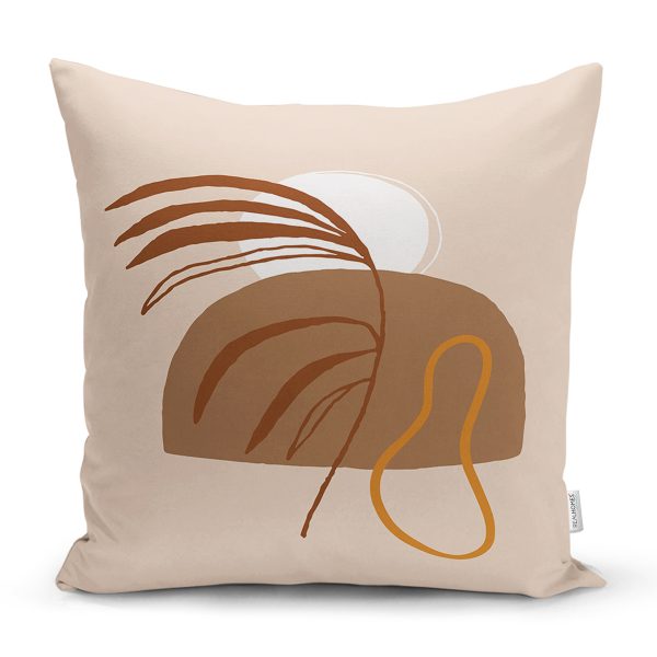 Renkli Zeminde Onedraw Çizimli Yaprak Desenli Dijital Baskılı Modern Yastık Kılıfı