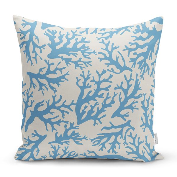 Mavi Yosun Desenli Dijital Baskılı Dekoratif Kırlent Kılıfı