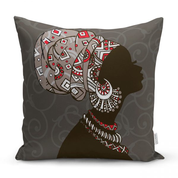 Gri Zemin Desenli Siyahi Kadın Motifli Yastık Kılıfı