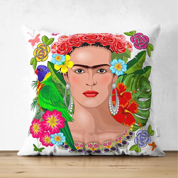 Çift Taraflı Özel Tasarım Frida Kahlo Tasarımlı Dekoratif Süet Yastık Kırlent Kılıfı