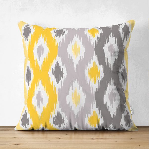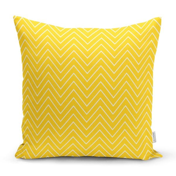 Sarı Zemin Üzerinde Geometrik Çizimli Dijital Baskılı Modern Yastık Kırlent Kılıfı