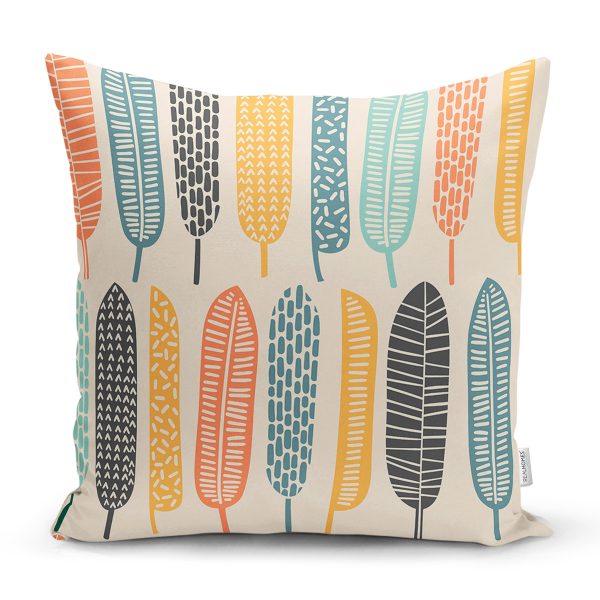 Beyaz Zeminde Renkli Yaprak Desenli Dijital Baskılı Modern Yastık Kırlent Kılıfı