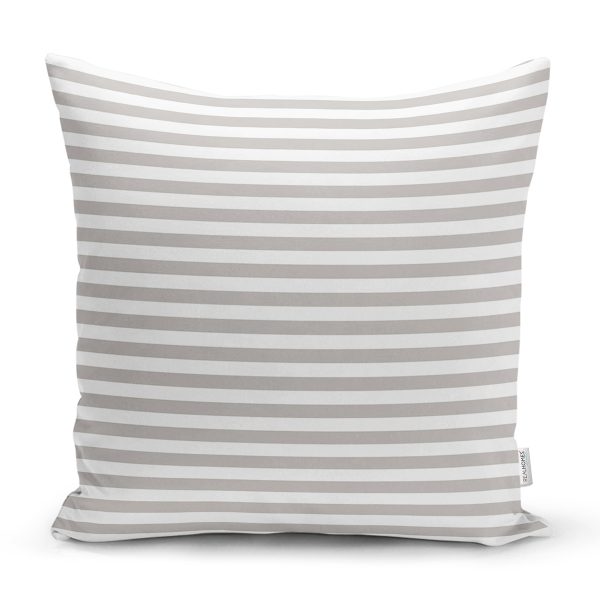 Beyaz Zemin Üzerinde Gri Çizgili Geometrik Desen Modern Yastık Kırlent Kılıfı