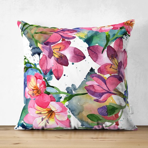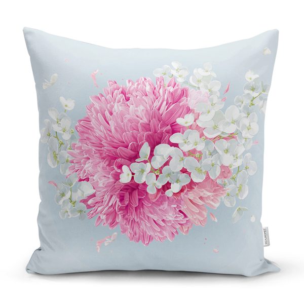 Pastel Zemin Üzerinde Çiçek Desenli Dijital Baskılı Modern Yastık Kırlent Kılıfı
