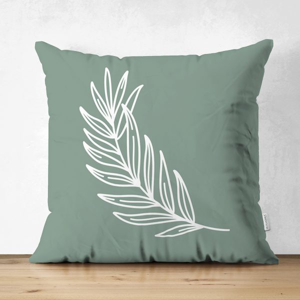 Çift Taraflı Renkli Zemin Üzerinde Yaprak Desenli Dijital Baskılı Modern Süet Yastık Kırlent Kılıfı