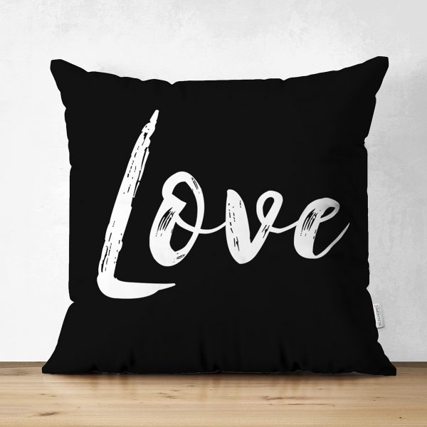 Çift Taraflı Siyah Zeminde Love Yazılı Modern Süet Yastık Kırlent Kılıfı
