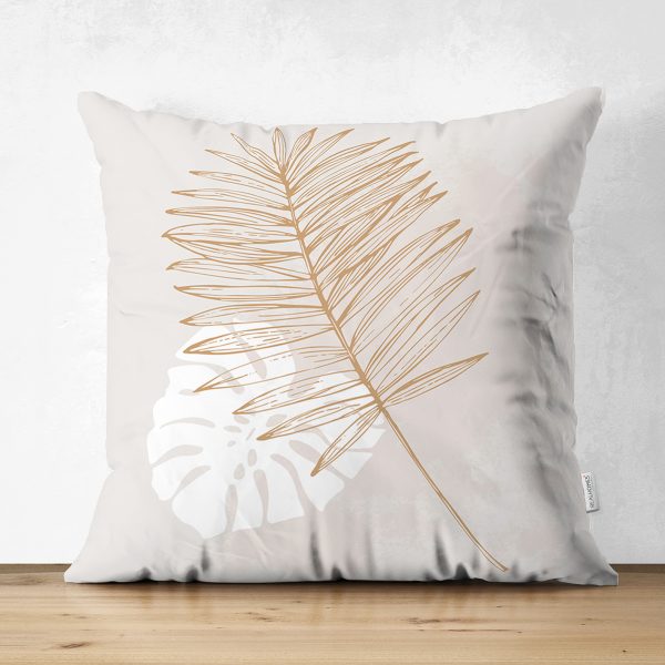 Çift Taraflı Pastel Zemin Üzerinde Yaprak Desenli Dijital Baskılı Modern Süet Yastık Kırlent Kılıfı