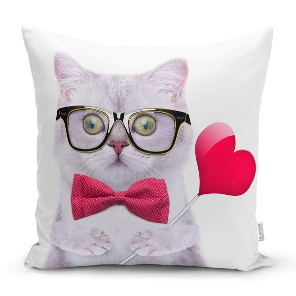 Kedili Dijital Baskılı Dekoratif Yastık Kırlent Kılıfı
