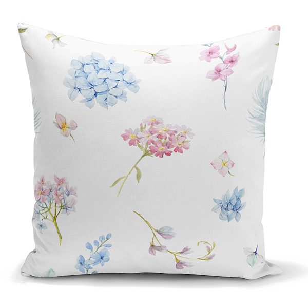 Pastel Zeminli Rengarenk Ortanca Çiçek Dijital Baskılı Modern Yastık Kırlent Kılıfı