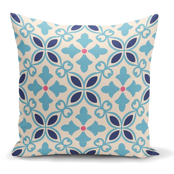 Modern Çini Desenli Dijital Baskılı Dekoratif Kırlent Kılıfı