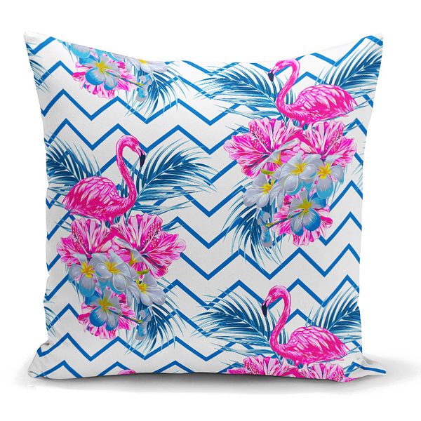 Zigzag Zeminli Flamingo Baskılı Dekoratif Yastık Kırlent Kılıfı