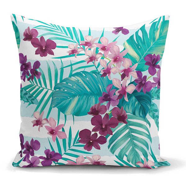 Soluk Çiçek Motifli Modern Baskılı Kırlent Kılıfı