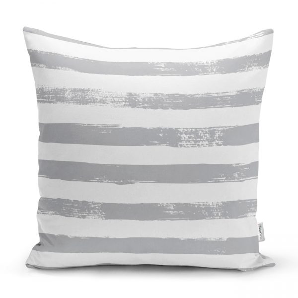 Gri Çizgili Motifli Dekoratif Modern Yastık Kılıfı