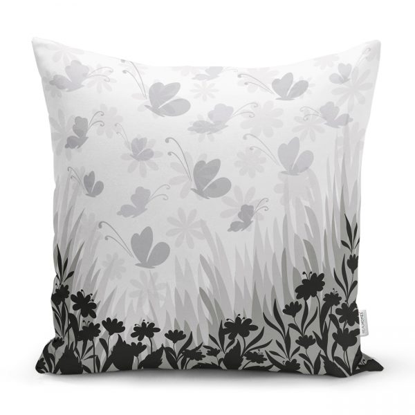 RealHomes Siyah Çiçekler Üzerinde Kelebek Motifli Özel Tasarım Kırlent Kılıfı