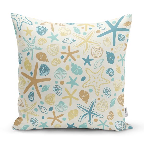 Renkli Zeminli Deniz Yıldızı Desenli Dijital Baskılı Modern Yastık Kırlent Kılıfı