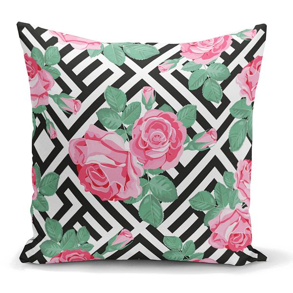 Karışık Desenli Gül Baskılı Dekoratif Kırlent Kılıfı