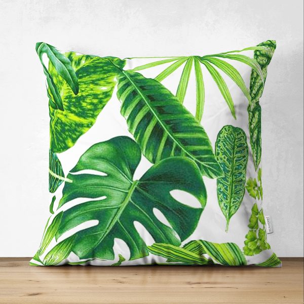 Çift Taraflı Beyaz Zeminde Watercolor Yapraklar Özel Tasarımlı Süet Yastık Kırlent Kılıfı