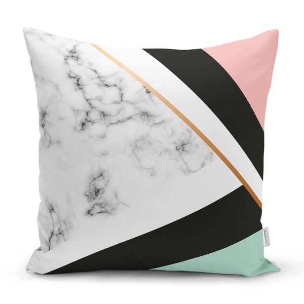 Renkli Geometrik Desenli Mermer Motifli Dijital Baskılı Modern Kırlent Kılıfı