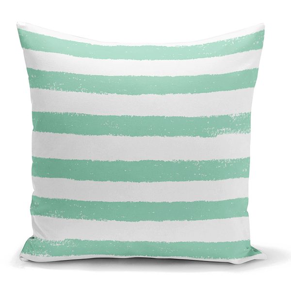 Su Yeşili Çizgili Dijital Baskılı Modern Yastık Kırlent Kılıfı