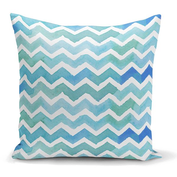 Sulu Boyalı Zigzag Desenli Dijital Baskılı Kırlent Kılıfı