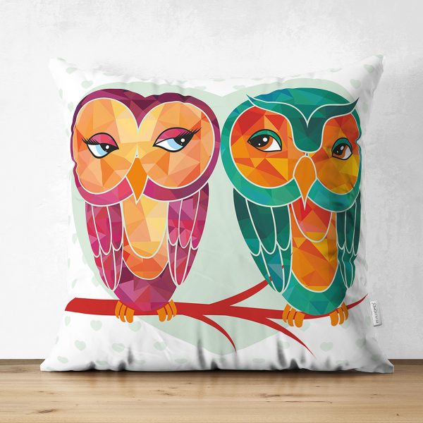 Çift Taraflı Baykuş Desenli Dijital Baskılı Dekoratif Modern Süet Yastık Kırlent Kılıfı
