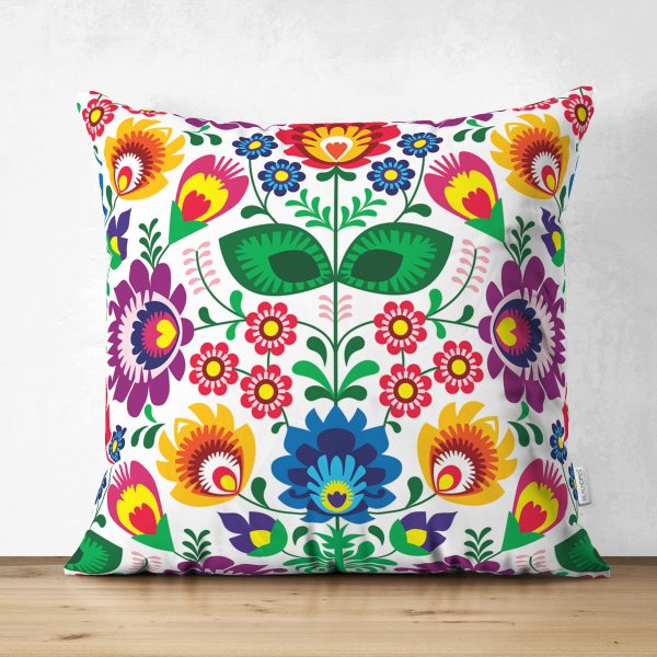 Beyaz Zemin Soft Çiçek Temalı Şönil Yastık Kırlent Kılıfı