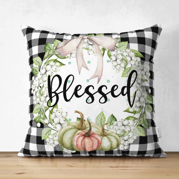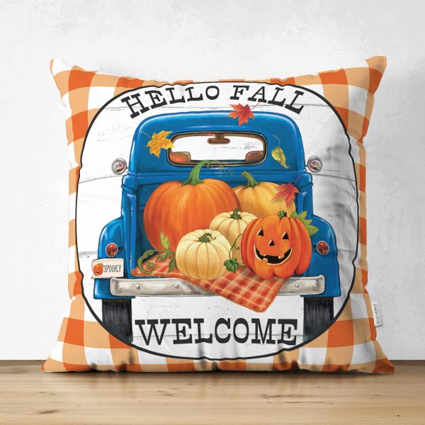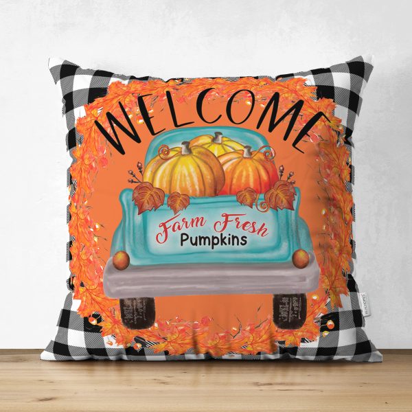 Farm Fresh Ekose Motifli Kabak Temalı Modern Şönil Yastık Kırlent Kılıfı