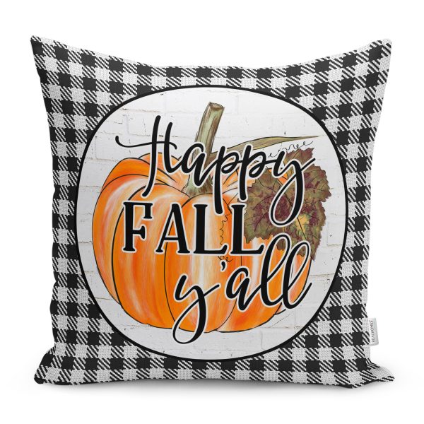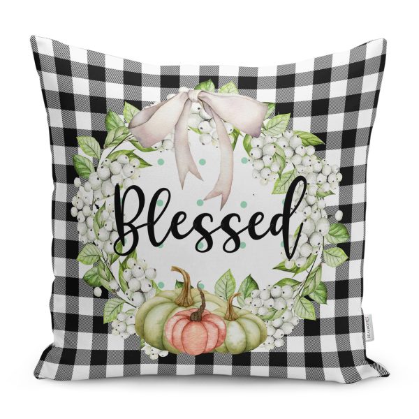 Siyah Beyaz Ekose Motifli Kabak Temalı Modern Yastık Kırlent Kılıfı
