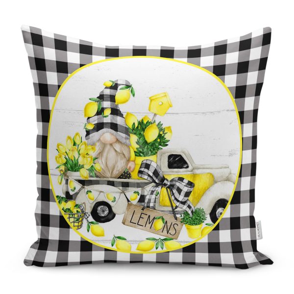 Limon Tasarımlı Ekose Motifli Modern Yastık Kırlent Kılıfı