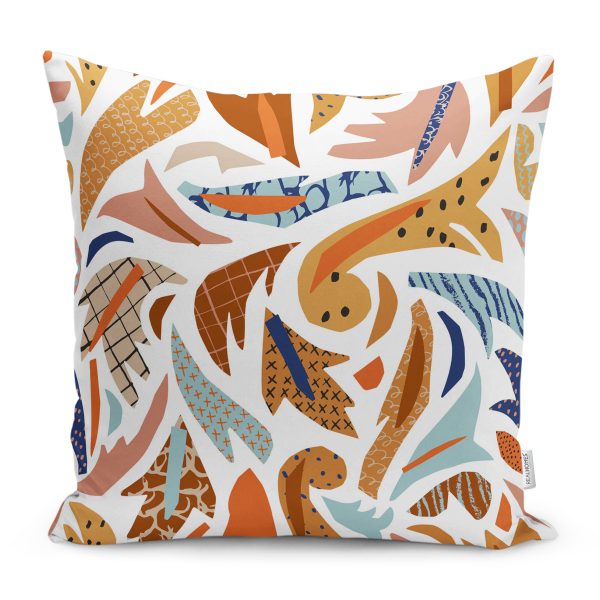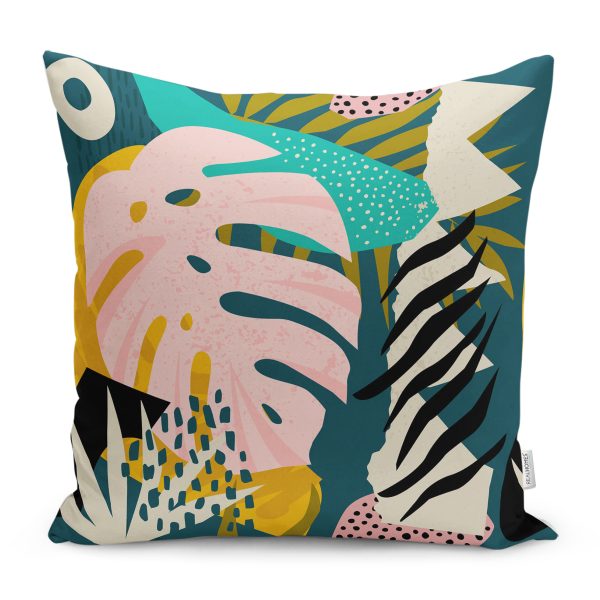 Soyut Renkli Tropik Yaprak Tasarımlı Dekoratif Yastık Kırlent Kılıfı