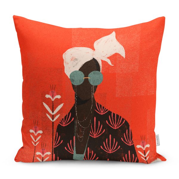 Kırmızı Zemin Siyahi Kadın Figürlü Yastık Kırlent Kılıfı