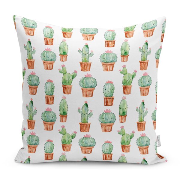 Küçük küçük Kaktüs Çizimleri Dijital Baskılı Yastık Kırlent Kılıfı