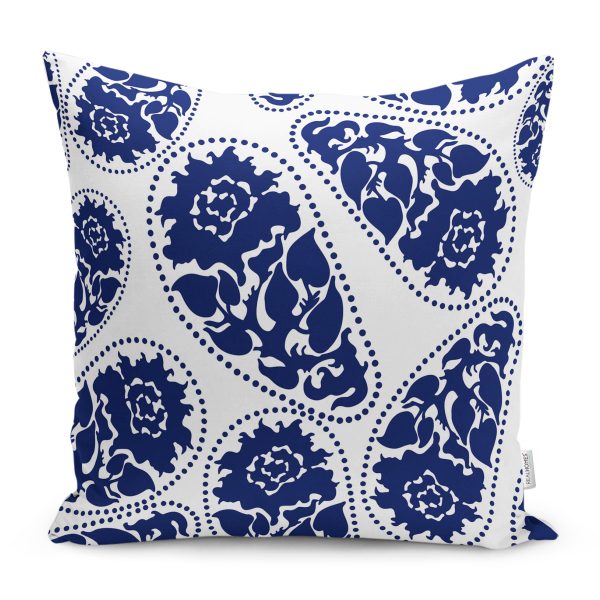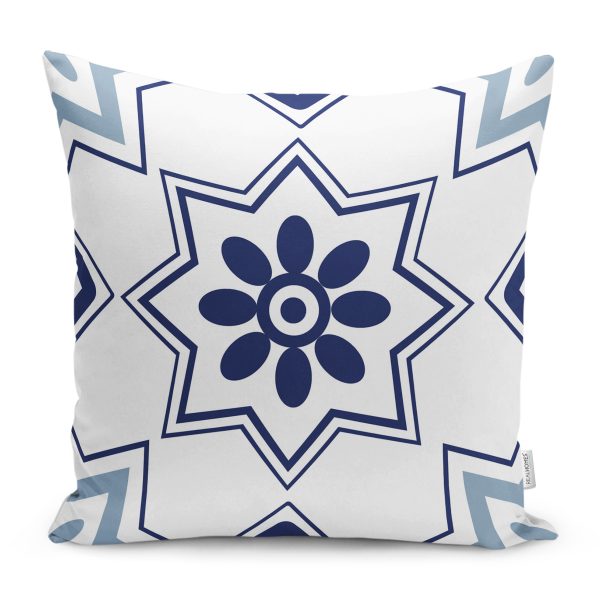 Mavi Çini Çizimli Dijital Baskılı Yastık Kırlent Kılıfı