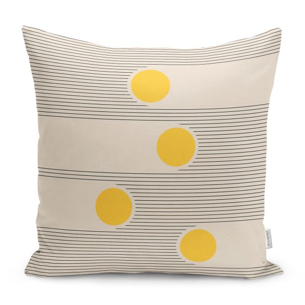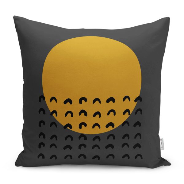 Sanatsal Siyah Zemin Sarı Yuvarlak Tasarımlı Yastık Kırlent Kılıfı