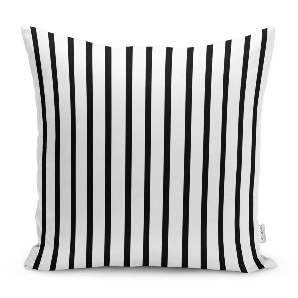 Siyah Beyaz Çizgili Dijital Baskılı Yastık Kırlent Kılıfı
