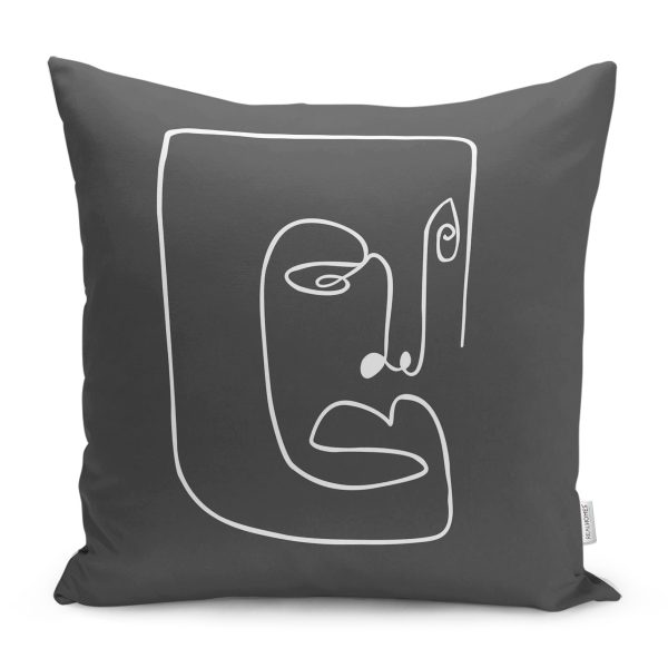 Koyu Gri One Line Çizimli Dijital Baskılı Yastık Kırlent Kılıfı