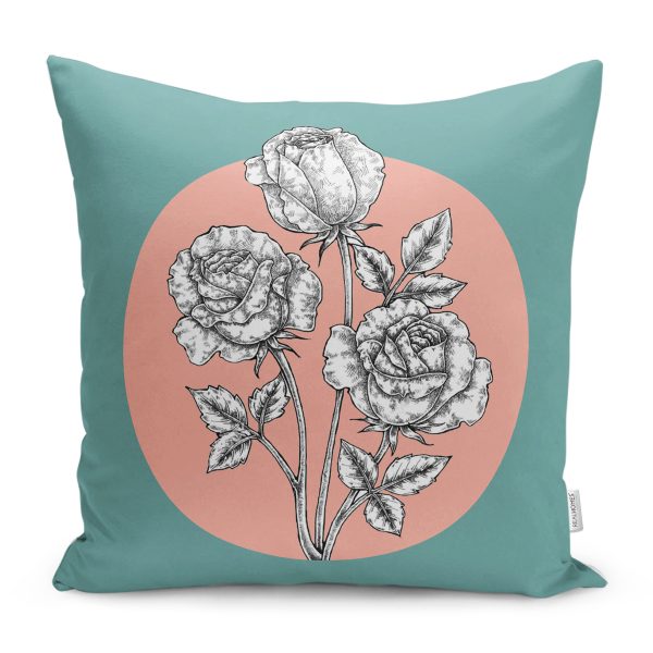 Turkuaz Pudra Zeminli Gül Motifli Yastık Kırlent Kılıfı