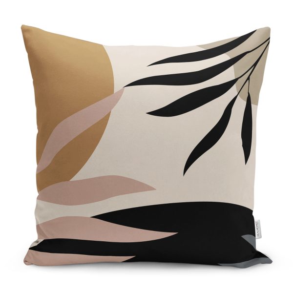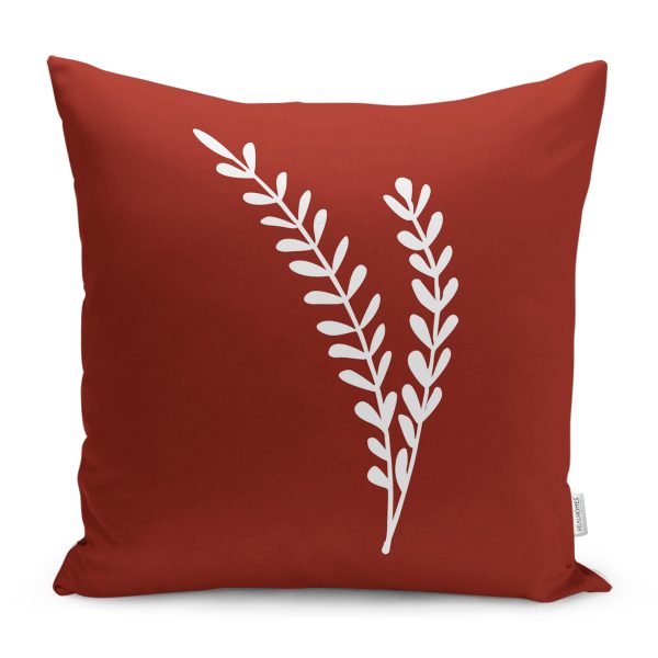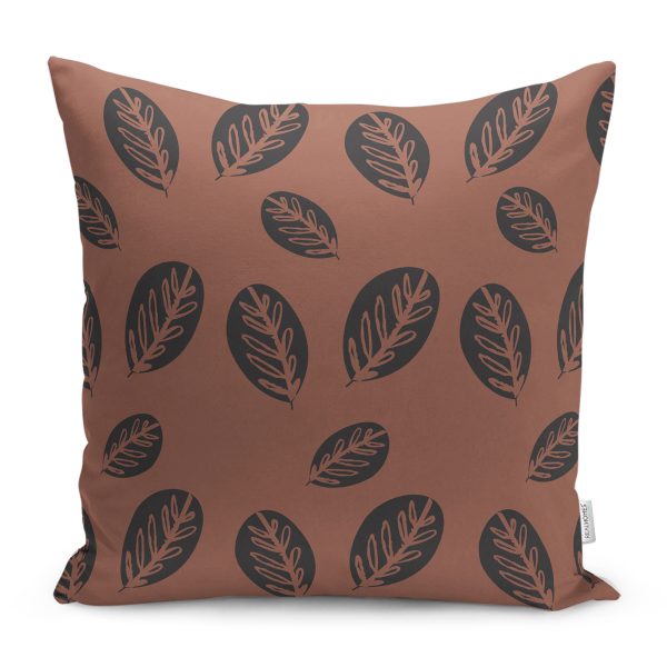 Kahve Zeminli Yaprak Tasarımlı Dijital Baskılı Kırlent Kılıfı